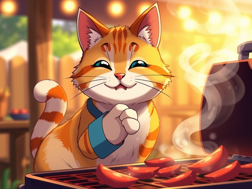 Torn bicep or not, one feline is still the head chef of this BBQ and his name is Cat Chord Chris.